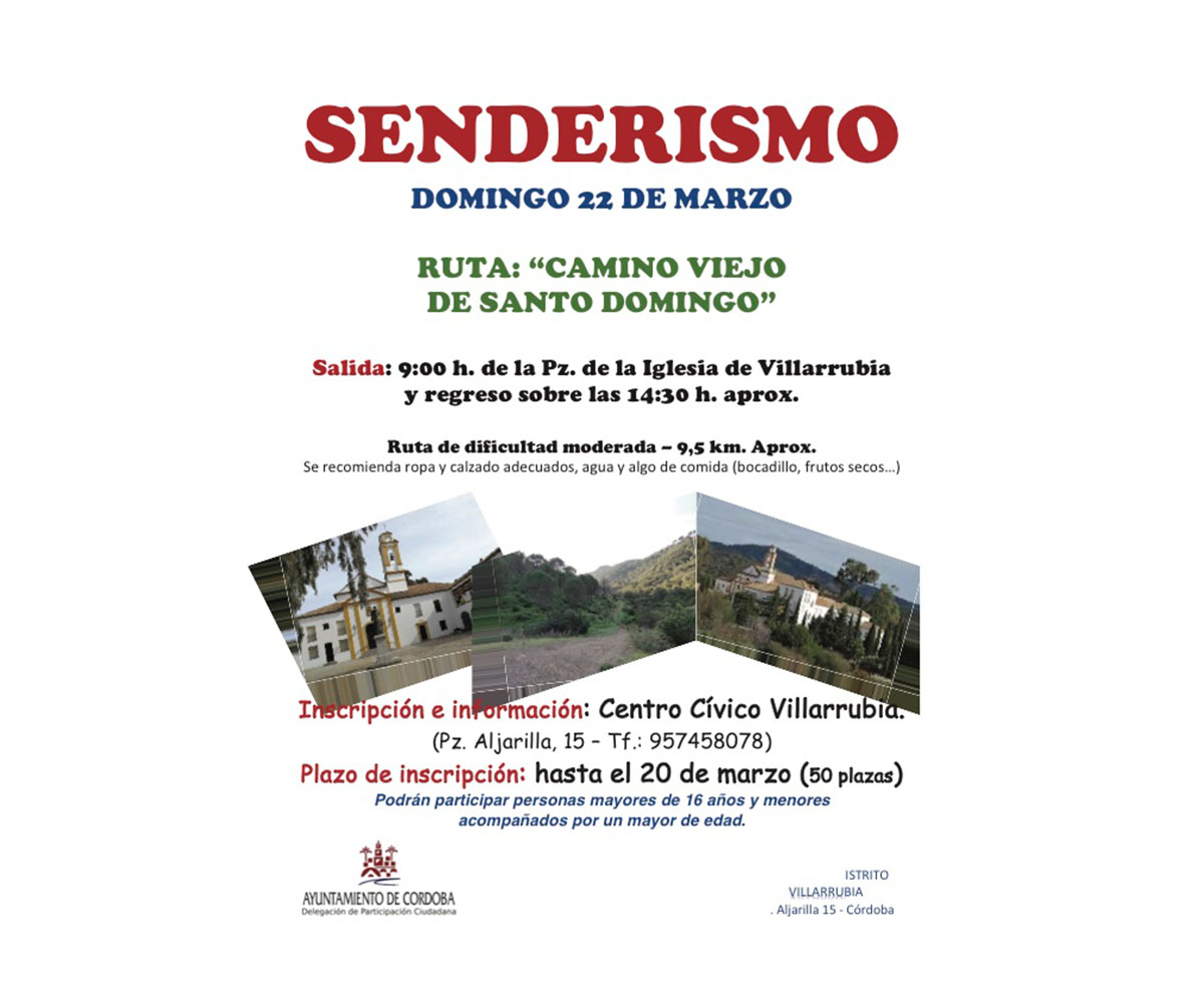 Si te gusta caminar al aire libre y descubrir el entorno natural de la barriada de Villarrubia, esta actividad es perfecta para ti. ¡Prepárate para una mañana de deporte, naturaleza y convivencia! 🌿🥾