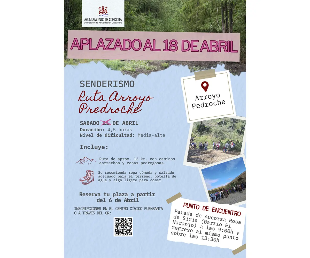 📣SE APLAZA POR LLUVIAS LA PRÓXIMA RUTA DE SENDERISMO ORGANIZADA DESDE CENTRO CÍVICO FUENSANTA AL ARROYO PEDROCHE📣